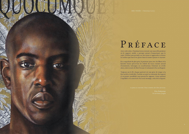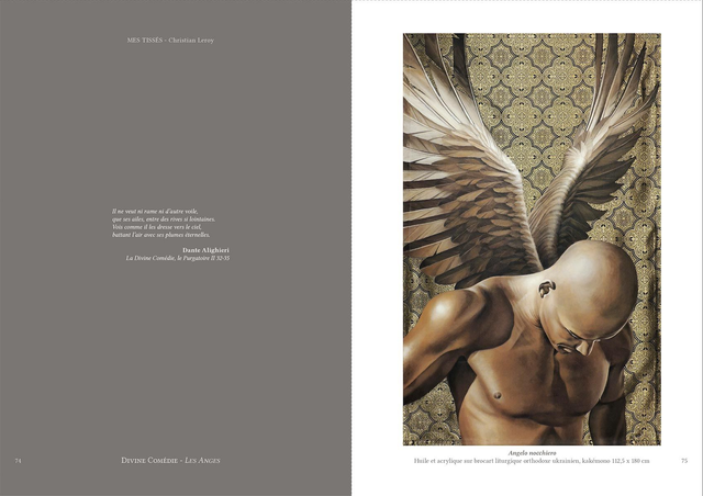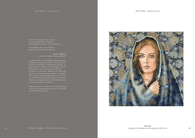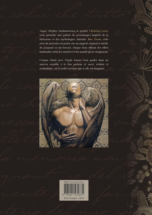 Anges, Sibylles, Enchanteresses, Christian Leroy vous présente une galerie de personnages inspirés de la littérature et des mythologies. Intitulée Mes Tissés, cette série de portraits est peinte sur un support original, des tissus jacquard ou brocart, offrant des effets inattendus selon les matières et les motifs qui les composent.